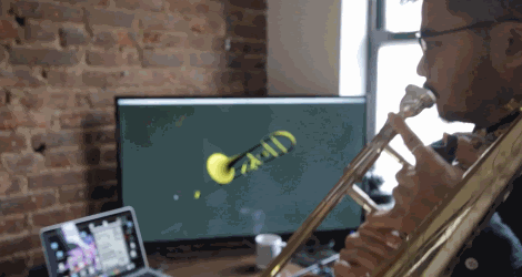 The sensor tracks the orientation of the trombone, now mubone, and the data can be used in a number of ways. The mubone and trombone has an inherent directionality; it is always pointing somewhere. The information about where the mubone is pointing (an x y vector) is one of many data streams we can use.